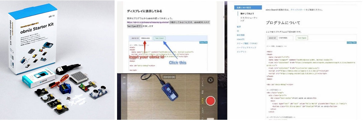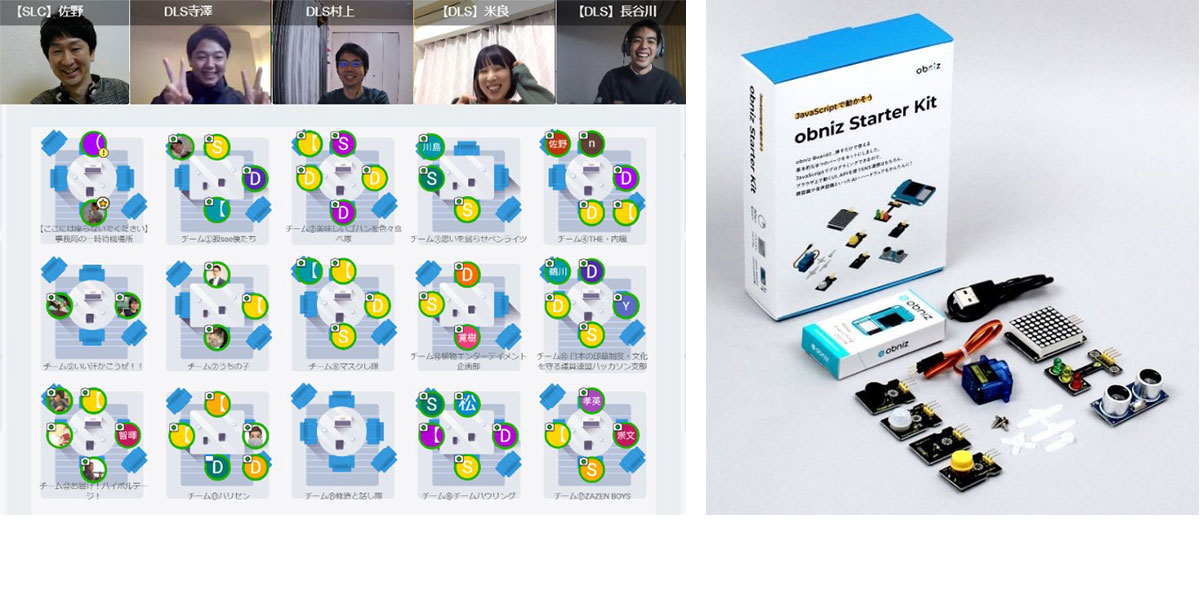 弊社は今回、必要なパーツがセットになったIoT初心者向け『obniz Starter Kit』をご用意。「ハンズオン」では、KITに入っている『obniz Board』のさまざまな機能をオンラインで説明しながら実際に試してもらい、各チームが個々のアイデアにどう技術として活かすか、より具体的に検討しやすくしました。