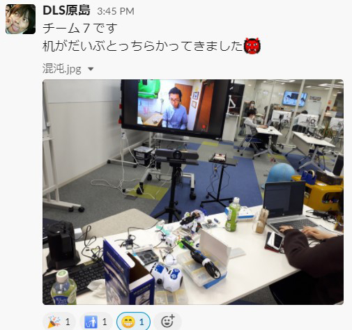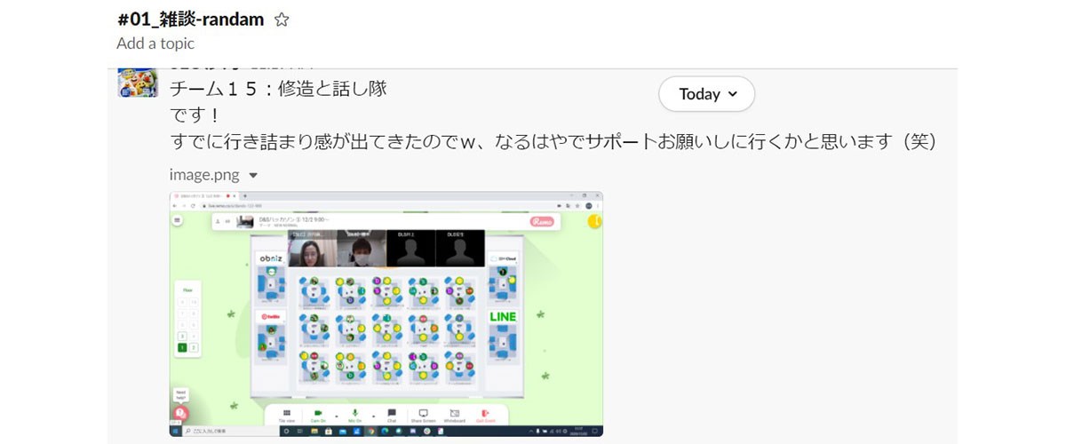 初日終了間際には、「中間発表」が行われました。各チームの提案内容や進捗具合を見ながら、参加者の皆さまは「8888(パチパチパチパチ)」と和やかにコメントやエールを送りつつ、焦りの空気もうっすらと漂っていたような…。