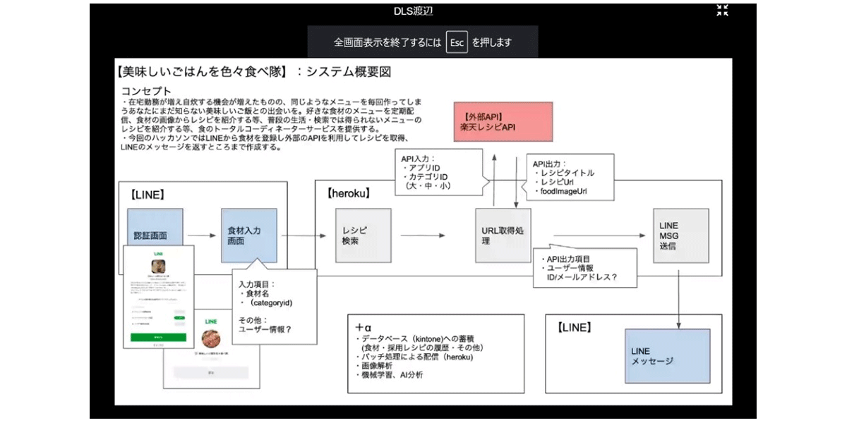 規定のハッカソンの時間が終了したところで、いよいよ各チームの成果発表です。こちらで、そのアイデアを一部ご紹介します。