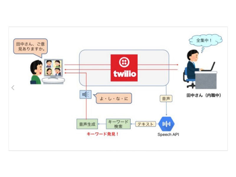 無駄なweb会議時、出席者から呼ばれたら自分に代わってシステムが「よしなに」と音声で自動返答する。システムのおかげで会議内容を無視できるので内職に集中できる。