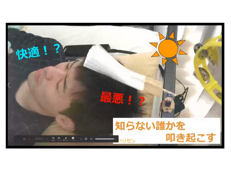 在宅勤務の頻度が増えたことにより、 起床時間が一定でなくなりうまく起きれない、コミュニケーションの回数が減っている、などの課題が発生しています。 この課題を解消する目覚ましを開発します。
