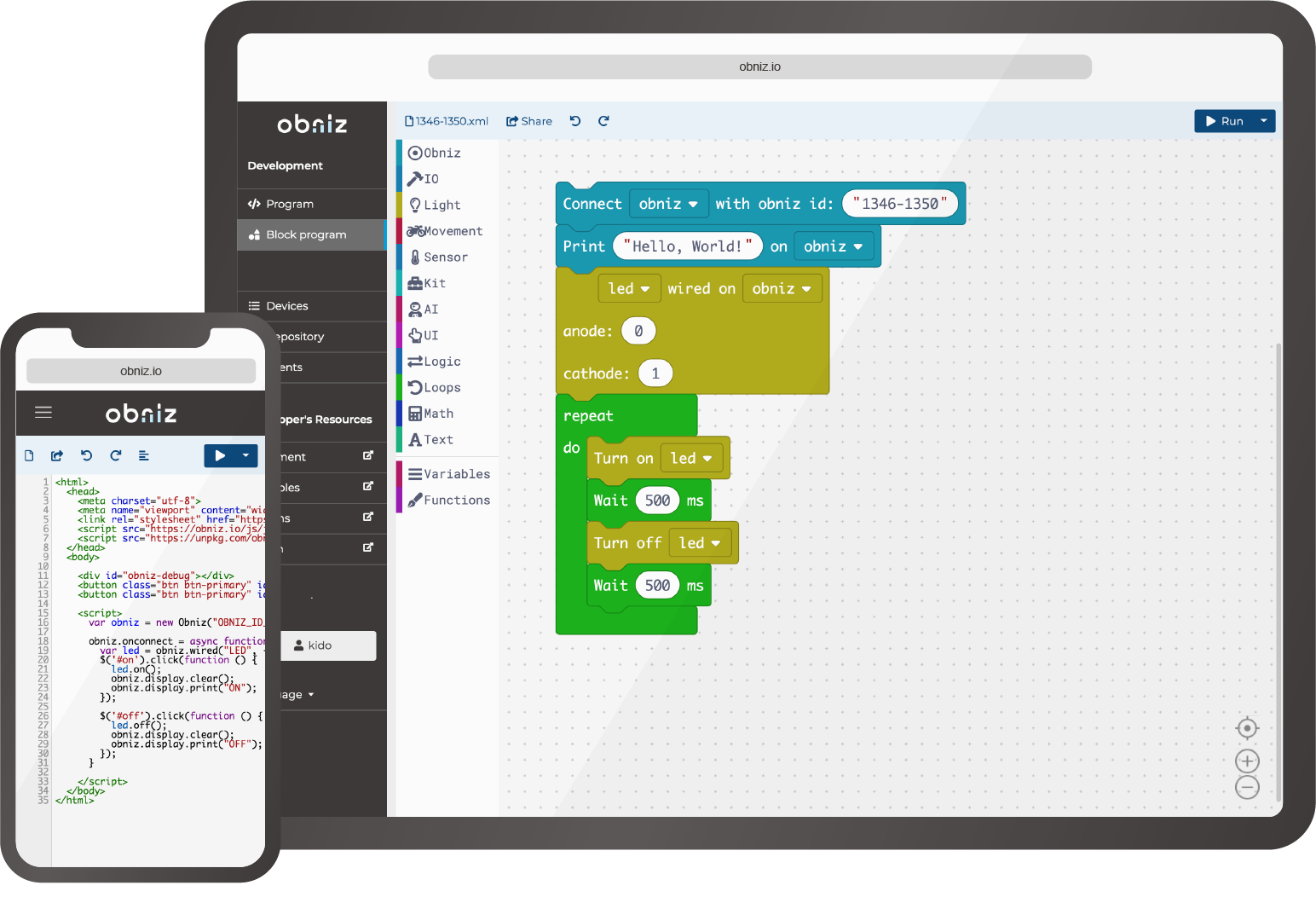 「obniz Board 1Y + Case」などobniz Boardシリーズは、インターネット経由で JavaScript を制御できるIoT開発ボードです。ボード単体でWi-Fiに接続でき、環境構築も不要。12個あるIOは、モーターやセンサーを直に接続できるパワー設計。さらに、過電流や過熱を防止する保護回路も搭載しています。また、ブロックを並べるだけで直感的にプログラミングできるブロックプログラムが用意されているので、プログラミング未経験者でも簡単にIoT工作を始められます。