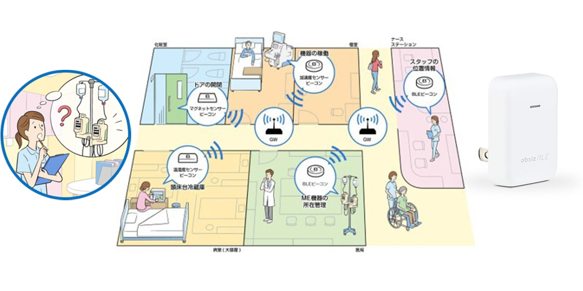 一方で、こうしたIoTシステムで用いるゲートウェイ(ネットワーク上のデータのやり取りをつなぐ役割を持つ機器、以下GW)は、ケーブル類や製品のカラーリングが安全性や美観を損なうという点から、医療機関によっては目立たない天井裏などに設置されています。