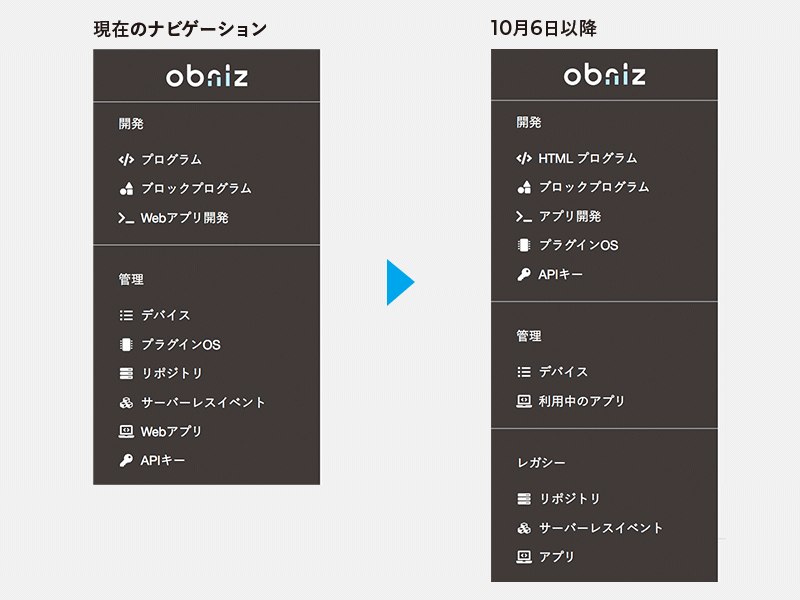 アプリの登場に伴い開発者ナビゲーションの配列が変わります。