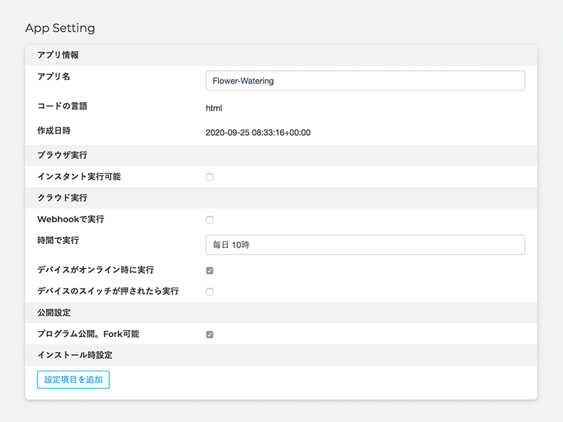 作ったアプリはデバイスごとに「インストール」ができ、設定もデバイスごとに保存可能です。同じプログラムを変えることなく複数台で使うことができます。