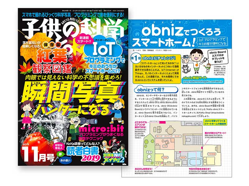 現在(2019年11月号〜)、子供の科学で「obnizでつくろうスマートホーム」を連載中。